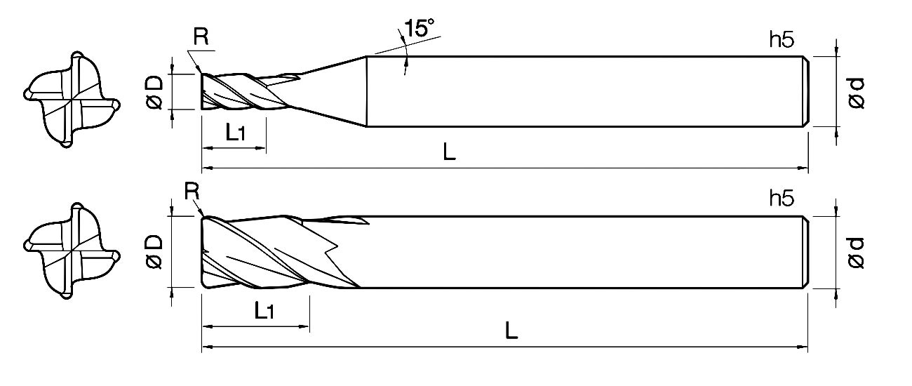4 Dents fraises toriques helice 30° excellente résistance à l'usure